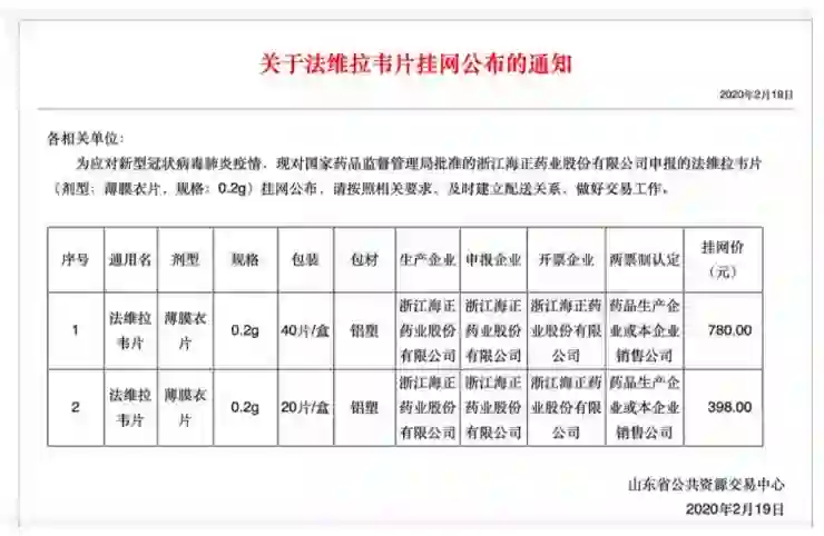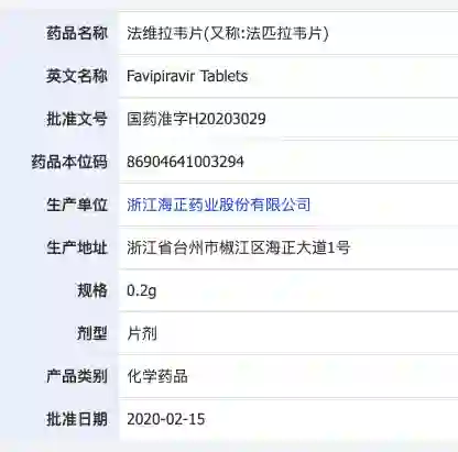 就在同一天,海正药业研制的 “法维拉韦片” 正式获得国家药监局批准上市,这是在疫情期间全国第一个批准上市的对新冠肺炎具有潜在疗效的药物。