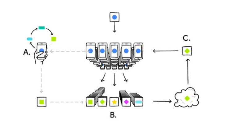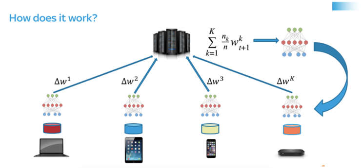 整个过程有三个关键环节:1)根据用户使用情况,每台手机在本地对模型进行个性化改进;2)形成一个整体的模型修改方案;3)应用于共享的模型。该过程会不断循环。