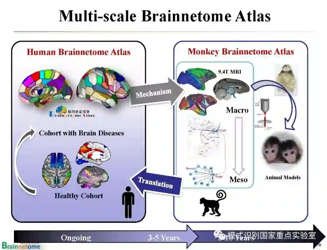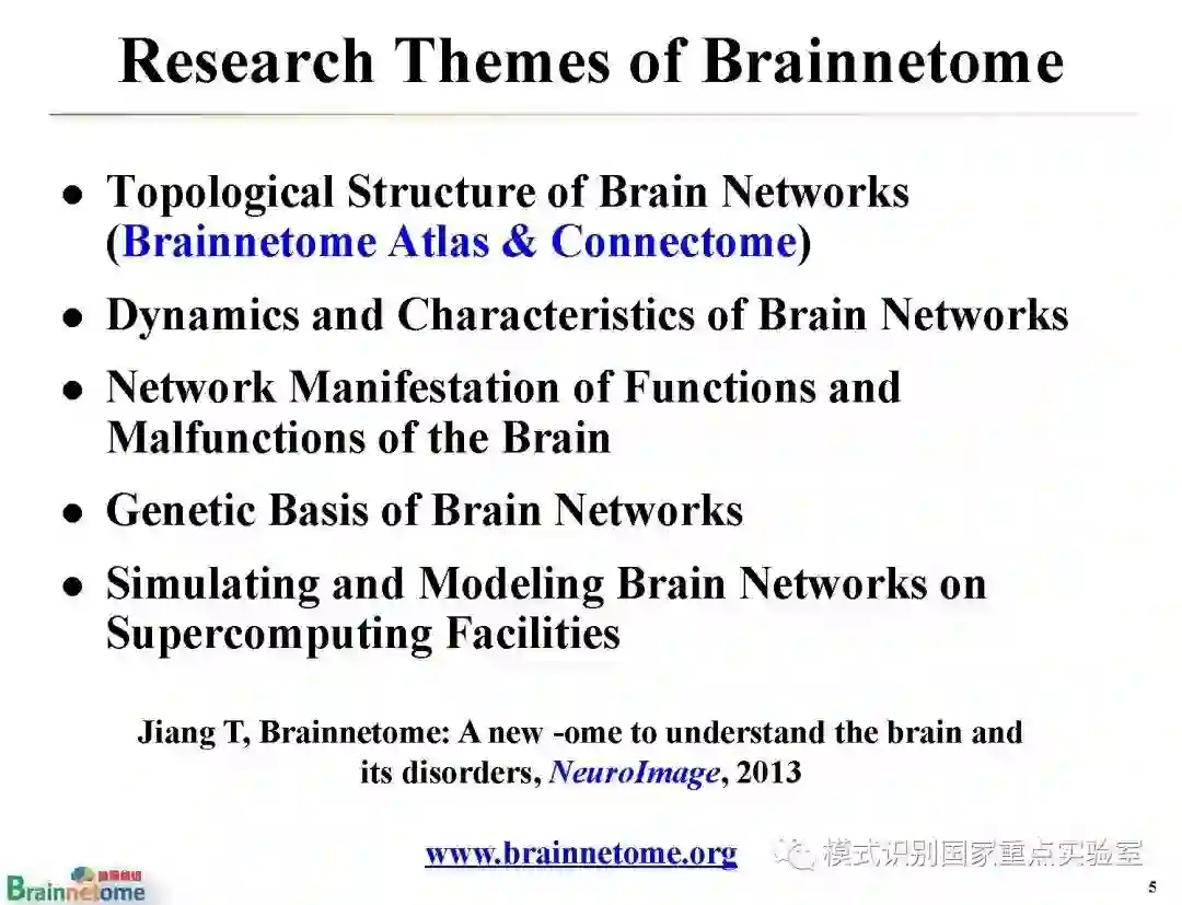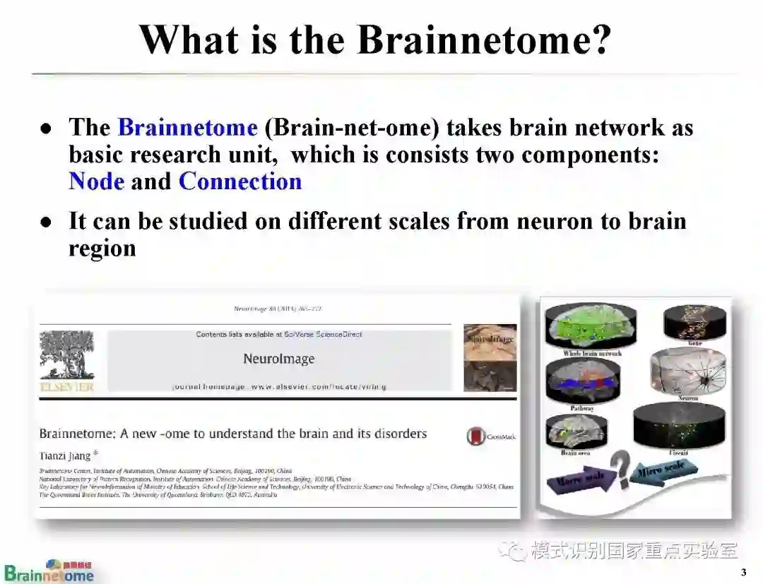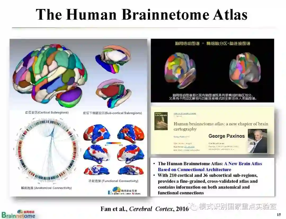 【导读】脑是人体最为复杂的器官,脑图谱是理解脑的结构和功能的基石。它为探索复杂的脑部结构和异常变化进行"导航"。因此,脑图谱绘制一直以来都是神经科学、认知科学、心理学和脑疾病研究的共同前沿领域。模式识别国家重点实验室脑网络组研究中心负责人蒋田仔研究员的报告详细阐述了研究团队近10年来在人类脑网络组图谱方面的研究进展,从脑网络组图谱的绘制、验证与应用三个方面,系统回顾了脑网络组图谱的原创思想、构建框架、生物学基础、以及在脑认知与疾病中的应用示范,并对脑网络组图谱的未来发展从多模态集成、个体化绘制以及多尺度验证三个方向进行了展望。我们希望该报告能够帮助读者厘清研究脉络,明晰未来走向。