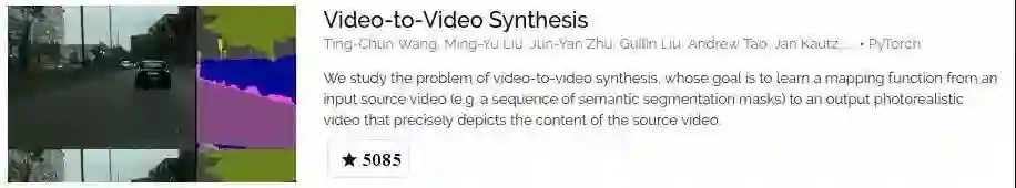 英伟达的Video-to-Video(vid2vid)合成论文,介绍了一个效果惊人的生成模型,过去几年里这也是最受欢迎的深度学习领域之一。