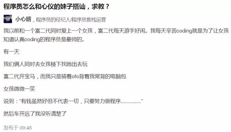 王小波程序员丨我会编程丨七夕表白丨程序员最高殊荣丨程序猿(媛)CP丨祭天丨Python歌词丨特斯拉丨程序媛丨直播丨鄙视链丨敲代码丨404丨结婚丨Facebook丨怎么进BAT丨女友日记丨高逼格指南丨计算机专业丨技能干货丨九寨沟地震丨编程习惯丨陆奇演讲丨自救指南丨周鸿祎谈创业丨