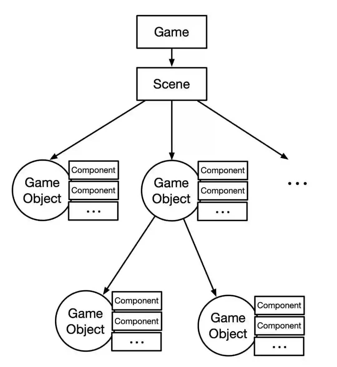 引擎只有Game和Componet,没有Scene和GameObject概念,这样会导致游戏对象嵌套复杂,对多场景不友好。