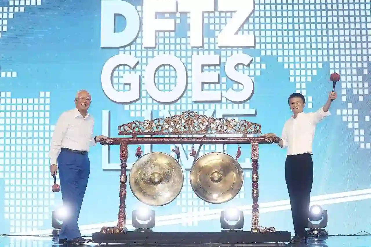 11月3日下午,随着马来西亚总理纳吉布与阿里巴巴董事局主席马云共同鸣锣三声,阿里巴巴首个海外eWTP试验区——马来西亚数字自由贸易区在吉隆坡全面启用运营。