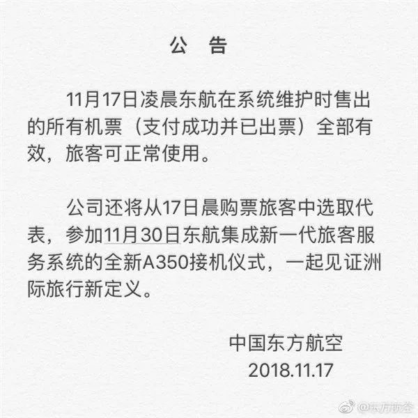 最后东航霸气回应:这个 bug 我认了!售出的机票通通有效!