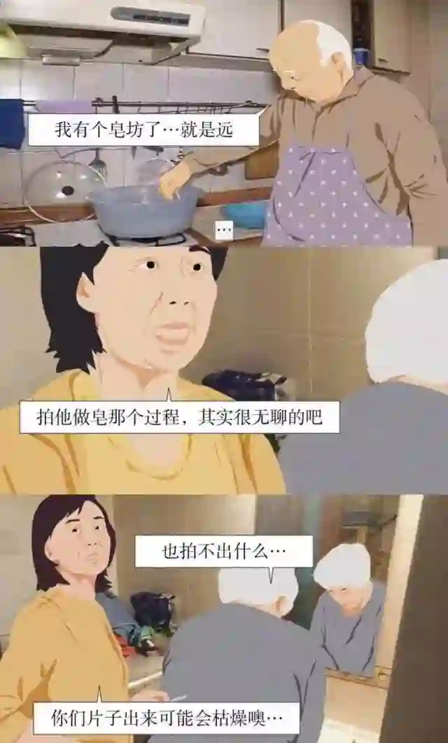最近一篇漫画《自己的故事》。因为内容改编自真实人物,他前后采访郭佳几次,整理出十几万字采访稿。由于时间紧迫,不得不忍痛放弃呈现郭佳父亲做皂的过程。在他看来,那是构成故事的重要枝蔓。“那个故事的弧光非常完整,但最后只能砍掉。”他后悔自己因缺乏经验,而低估了工作量,“一开始几天我还和朋友约着喝酒,很傻逼。”