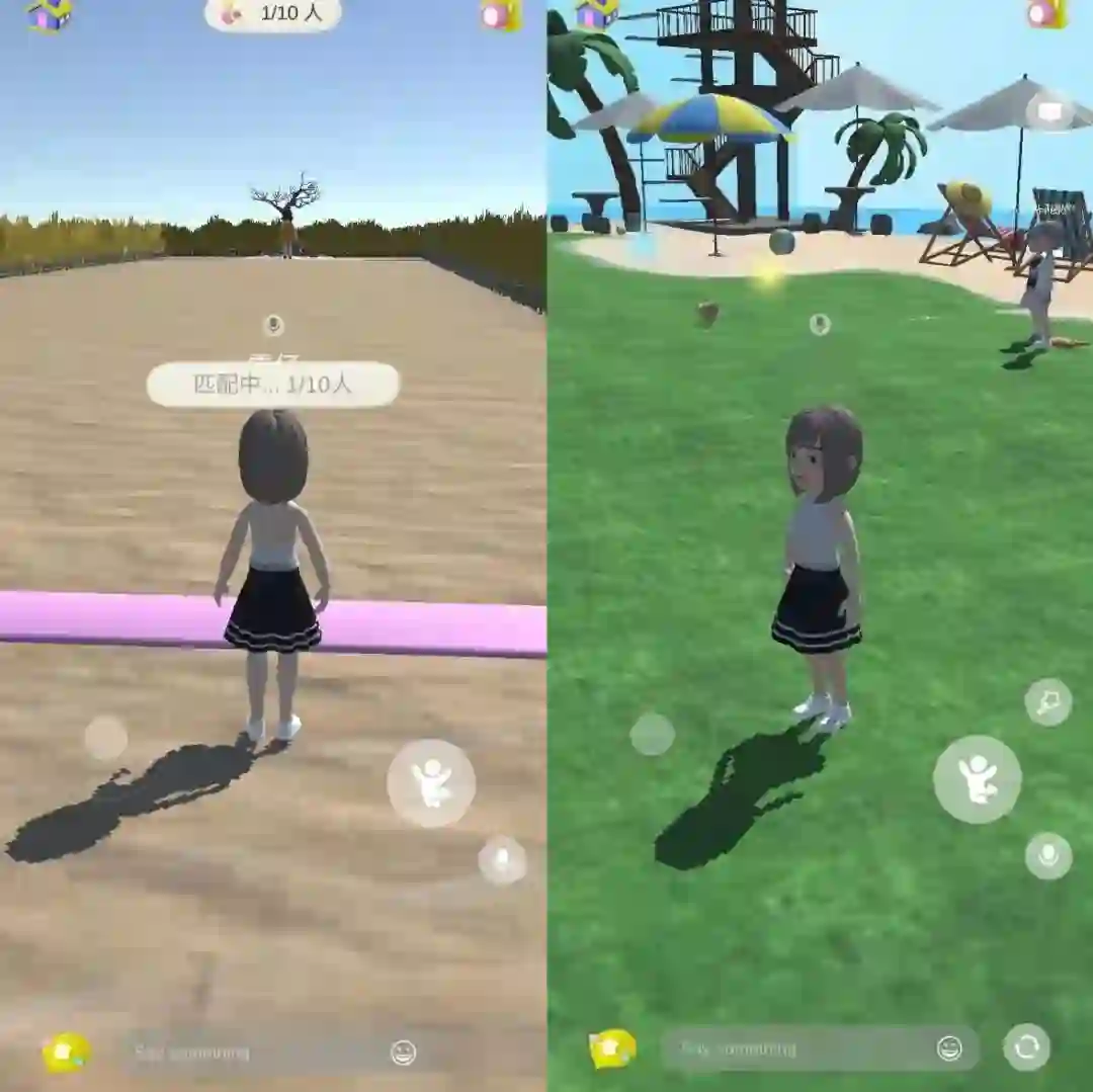 除了能够进入帐篷、咖啡厅等空间聊天外,缓缓星球独特的玩法是能够进行3V3的足球比赛。