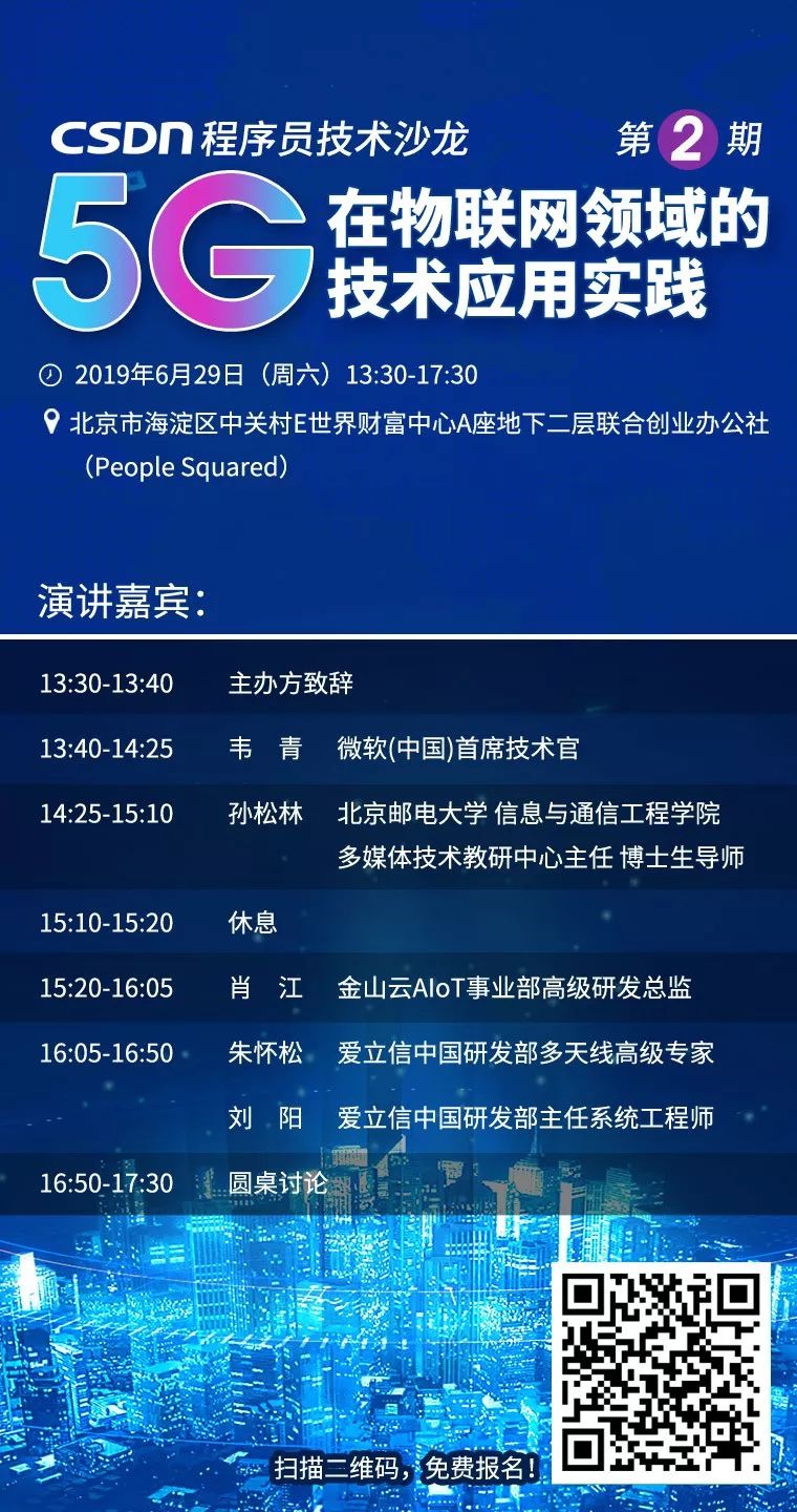 6 月 29 日,微软中国 CTO 韦青、北京邮电大学信息与通信工程学院多媒体技术教研中心主任/博士生导师孙松林、金山云 AIoT 事业部高级研发总监肖江、爱立信中国研发部多天线高级专家朱怀松、爱立信中国研发部主任系统工程师刘阳等行业内顶尖的领军者、资深的技术专家们共聚一堂,共同探讨 5G 在物联网中的巨大潜能。
