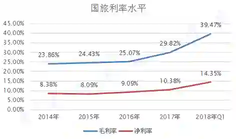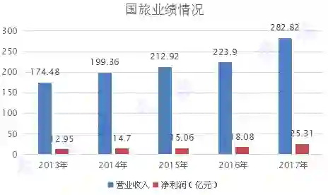 2017年,中国国旅总体毛利率增长较快,净利润也终于突破两位数。