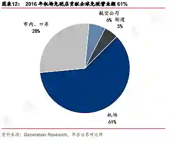 根据Generation Research 统计,从全球来看,机场免税额的占比达61%,其次就是市内、口岸免税店,占28%。