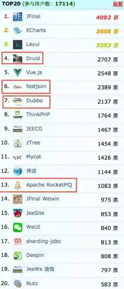 各大公司越来越重视开源,阿里巴巴作为国内首屈一指的科技公司,在开源方面也作出了越来越多的贡献,其中不乏优秀的项目,在开源中国上一年度公布的“2016年度最受欢迎中国开源软件评选”结果TOP20榜单中,阿里巴巴占4席。分别是:数据库连接池Druid、JSON解析库fastjson、分布式服务框架Dubbo、分布式消息中间件 Apache RocketMQ入选,分别排名第4、第6、第7、第13位。