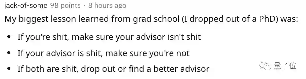 这似乎也符合国内情况:实验室老旧项目不出成果,导师又不许自研只让你打工,对你的论文含糊其辞一拖再拖,很多满怀科研热情的博士生都是这样被废掉的。