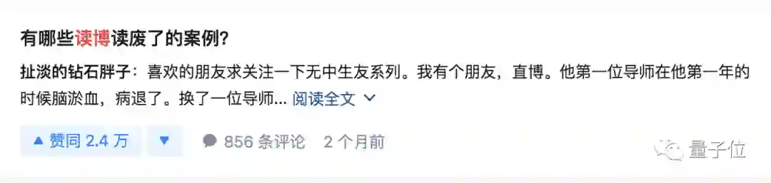 在知乎搜索“读博”,跳出来的是“读废了”的分享,高赞的回答里鲜有振奋人心的答案:
