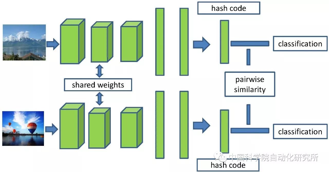 近期有人提出了基于深度学习的哈希算法,它可以同时学习图像表示和哈希编码(hash coding),取得了比传统哈希算法更好的结果。「CNNH」是早期将深层神经网络与哈希编码融合的工作之一,该工作包括两个阶段来学习图像特征表示和哈希编码。 CNNH 的一个缺点是通过学习得到的图像特征表示不能及时反馈给哈希编码。为了克服 CNNH 的这一缺陷,「NetworkIn Network Hashing/NINH」提出了基于三元组损失函数来表示图像的相似性。研究表明,图像特征表示和哈希编码可以在一个框架内相互促进。DSRH 算法通过保留多标签图像间的相似语义信息来学习哈希函数。近年来还提出了其他基于排序的深度哈希算法。除了基于三元组排序方法外,还有一些基于成对标签的深度哈希算法。