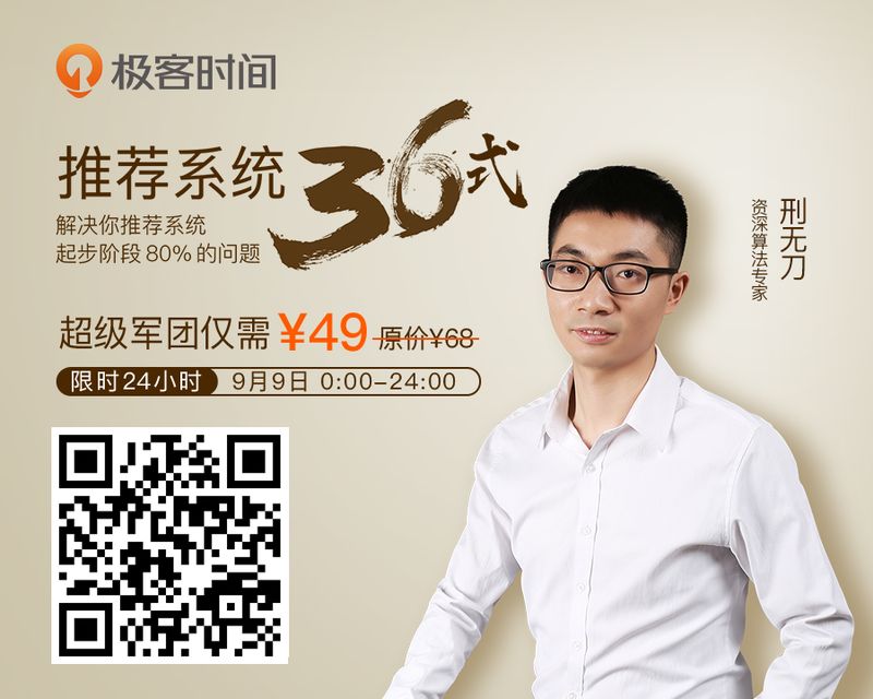 如何零基础搭建一个推荐系统?资深算法专家刑无刀,用 39 篇文章手把手带你解决推荐系统起步阶段 80% 的问题,分享给你大厂的推荐算法与实战案例。原价¥68,超级拼团只要¥49,赶紧上车!