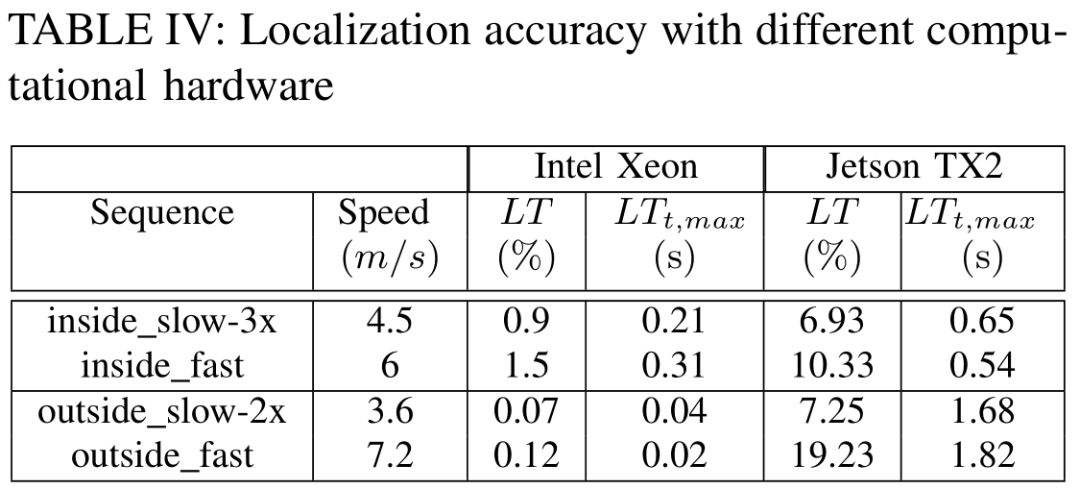此系统的定位模块相较于SLAM模块占用更少的计算资源; 但特征计算和匹配功能要求(资源)较高。我们展示了这种方法在嵌入式CPU上的局限性。