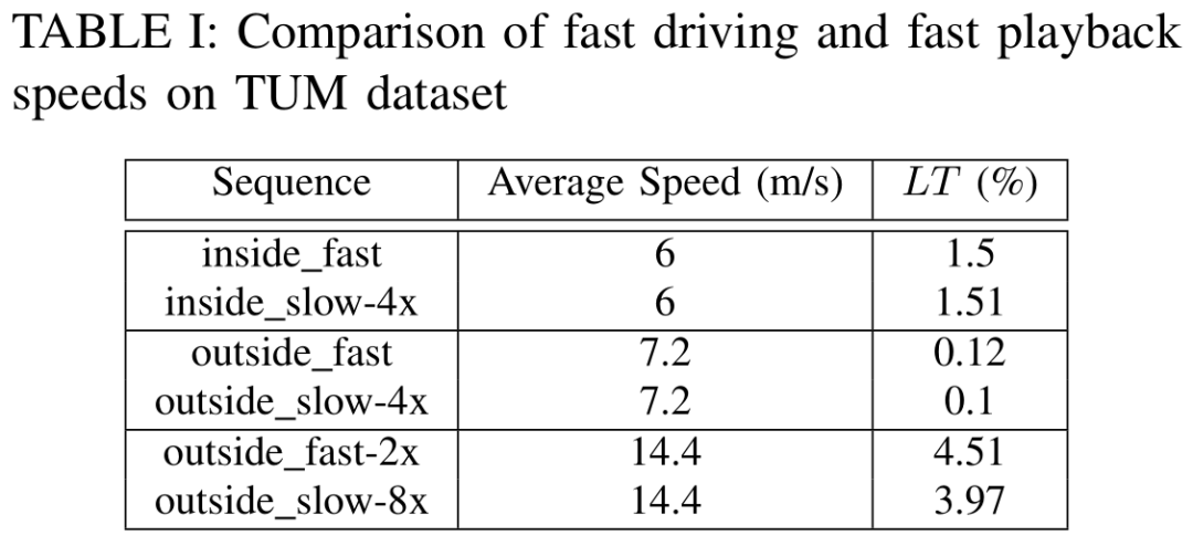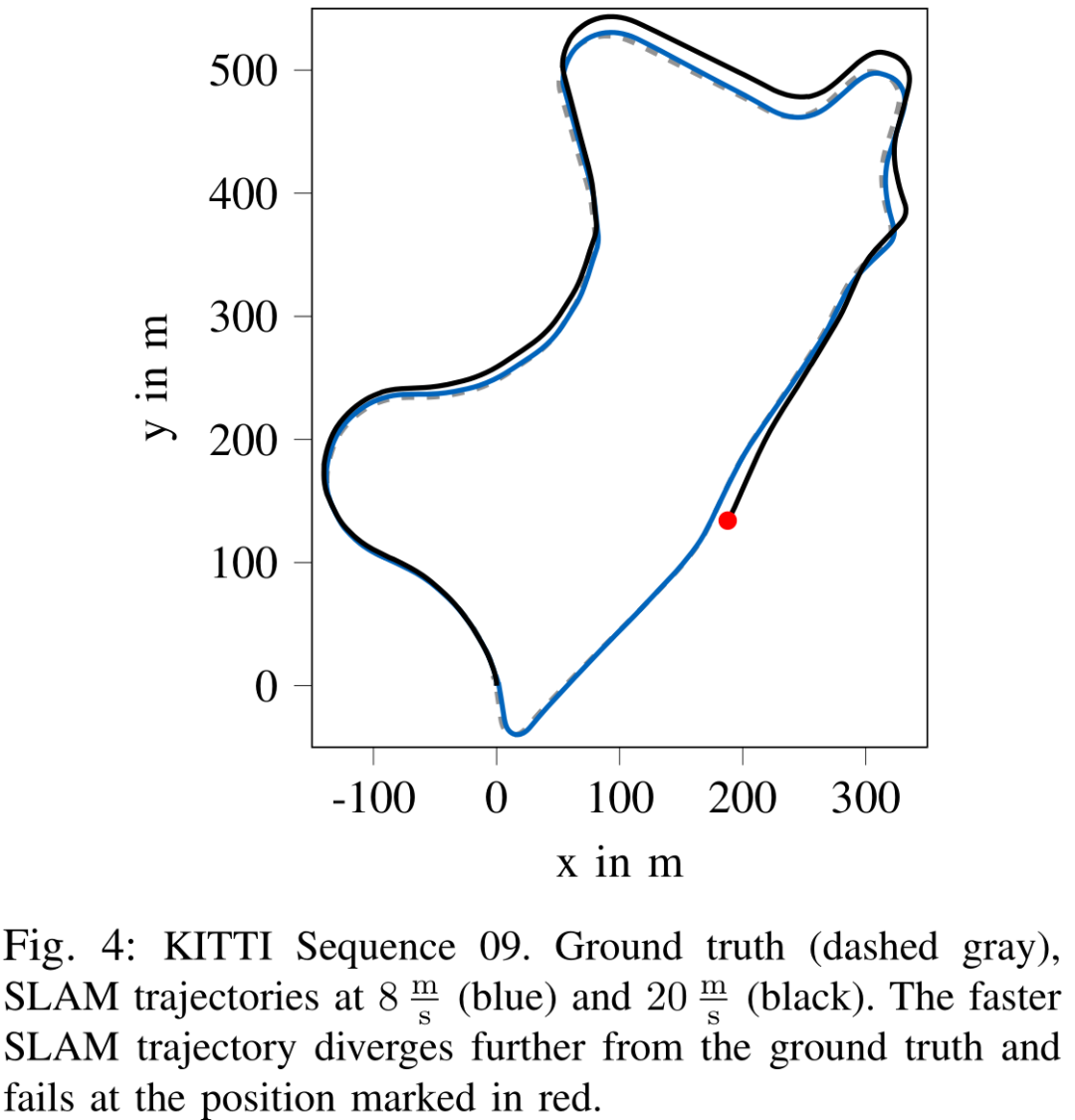 此系统的定位能力在特征值较少的环境中表现并不好,比如KITTI的01序列。这对类似算法在特征相似的比赛场景中的应用提出了挑战。(针对这个问题,)许多新兴的方法使用深度学习技术生成的特征来提高SLAM的应用性。尽管这种方法是否能提高上述场景的定位精度仍是一个有待研究的问题。同时,与目前(主流)的视觉特征相比,这些深度特征可以在光照条件改变时发生更小的变化。这可以使地图的重定位功能在不同的场景条件下比如白天和晚上,依然能够实现。