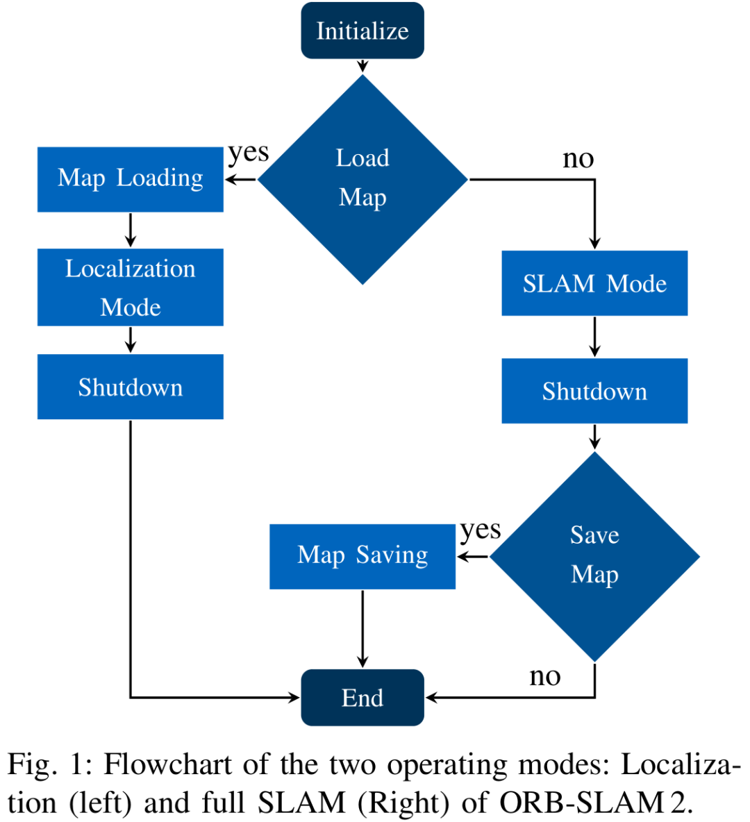 下面,我们对ORB-SLAM2算法进行了改进,以适应这种只进行两阶段定位场景的需要。第一步,我们在低速行驶条件下使用SLAM创建了一个环境地图。第二步,我们加载地图并以更高的速度在地图上定位车辆。结果表明,这种纯定位策略可以有效降低计算量和定位误差。在第二节中,我们简要地介绍了相关的研究和我们所建立的算法。在第三节中,我们讨论了我们对于ORB-SLAM2的拓展工作。在第四节中,我们评估了我们的拓展版本在不同场景下的性能,并得出了我们的结论。