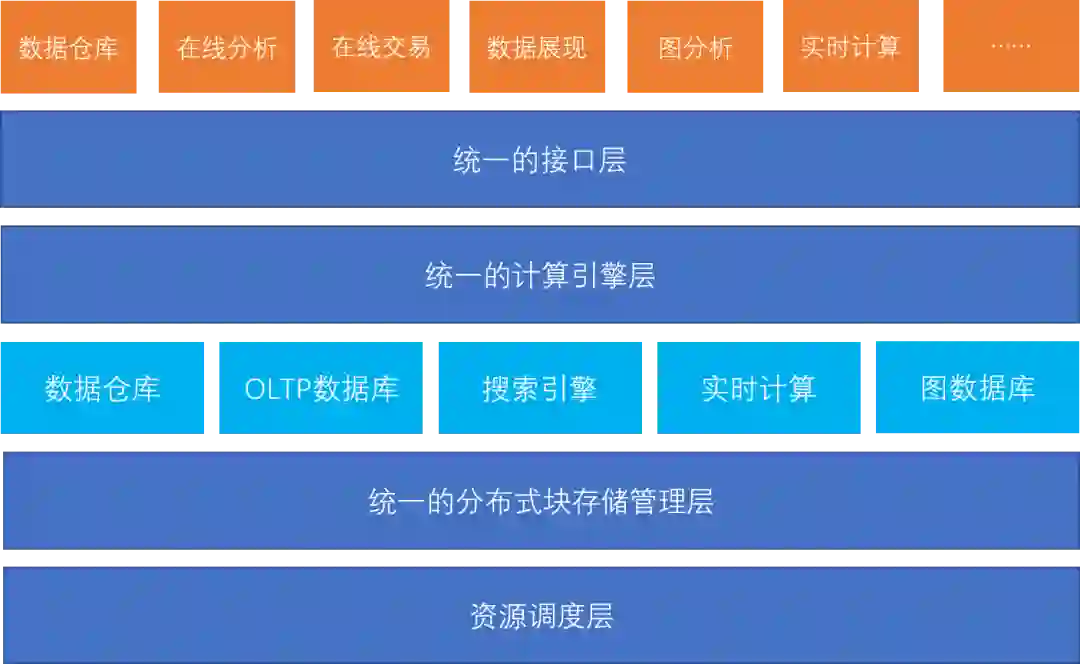 统一的分布式块存储管理层:过去的观点认为 HDFS 具有较好的通用性并在此之上搭载了各种引擎,实践证明 HDFS 无法实现高效的数据库,新一代的大数据体系需要一个统一的分布式块存储管理层,以支持不同的数据库类型。