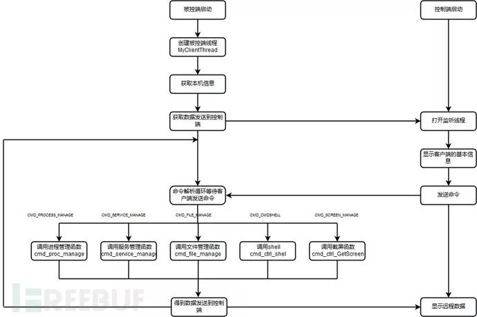 采用反弹型连接方式,被控端主动连接控制端从而能够轻松穿透大多数防火墙。