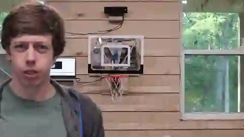 于是他继续创新。这回,他使用了机器人和计算机视觉!改进后的篮板长这样: