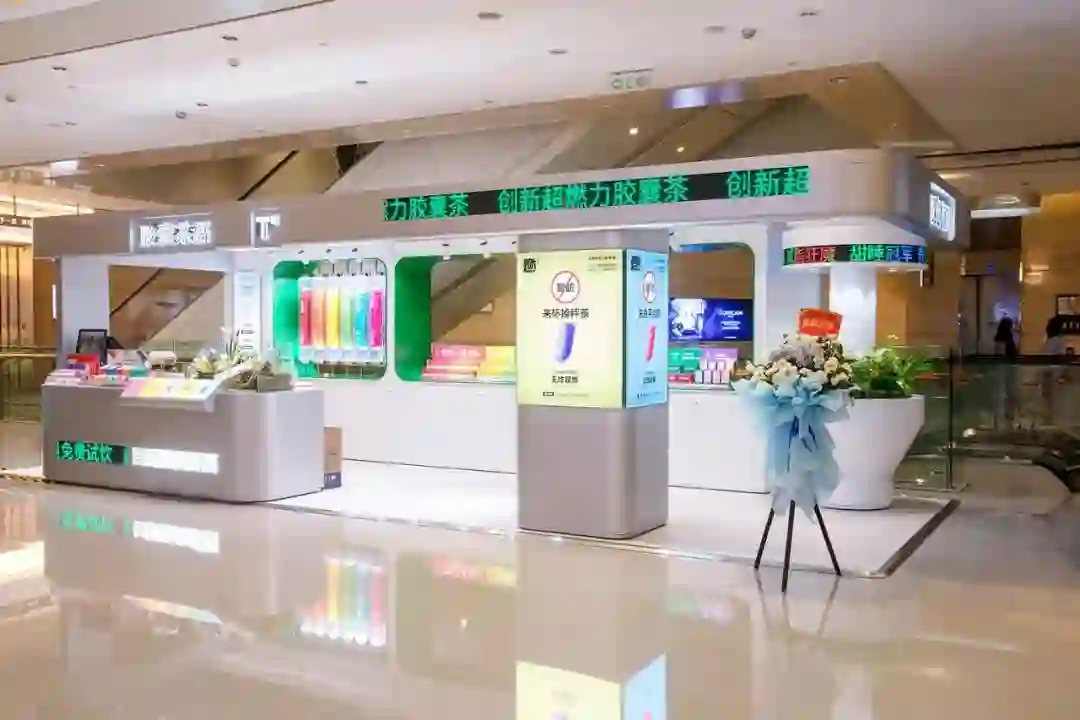 为了能离目标消费者更近,胶囊茶语铺开了全渠道零售,在线上布局了抖音、天猫、京东等,最近在抖音上还跃升了“抖品牌”行列。在线下,胶囊茶语进入KKV渠道时就登上了冲调类目的第一名,之后半年更是快速完成了快消渠道10000+点位的入驻,还分别于北京、上海、成都等地开设多家快闪实验店。