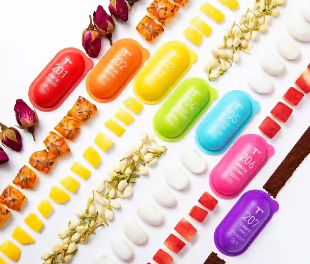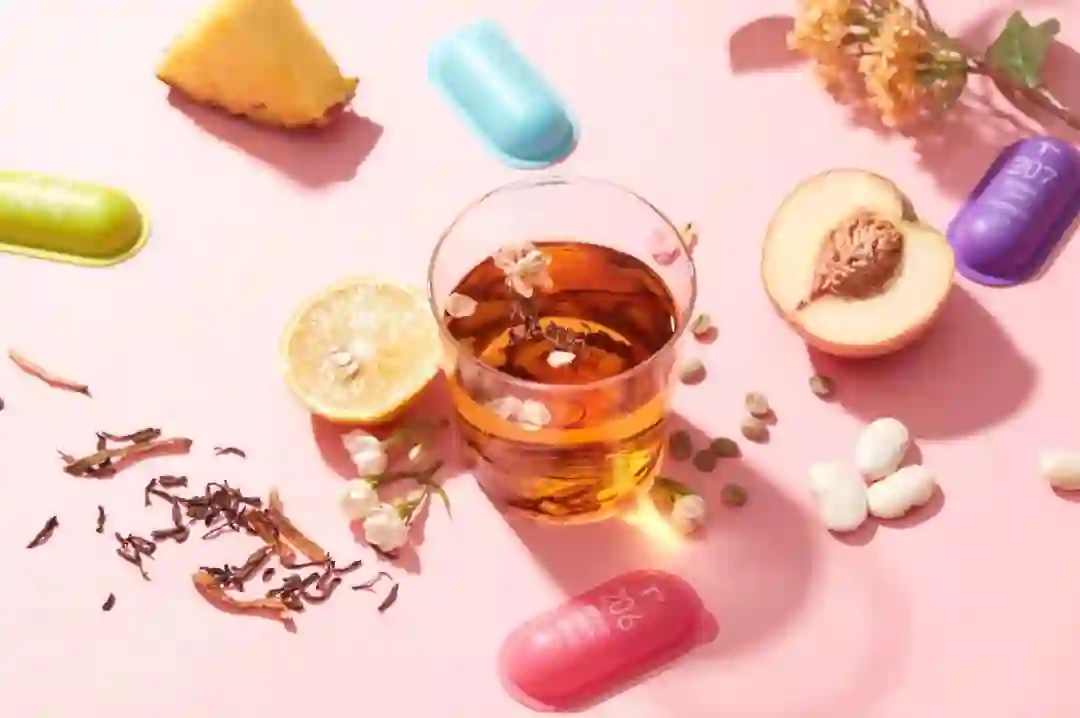 2020年年底,胶囊茶语的首款产品——“4+1”配方胶囊茶上线。小小的一颗胶囊里,不仅有茶叶、茶粉、花瓣、果粉还有一种特殊的妆食原料。相比于单一的原叶茶,胶囊茶语的口味具有丰富的层次感,成为了很多年轻人的心头好。