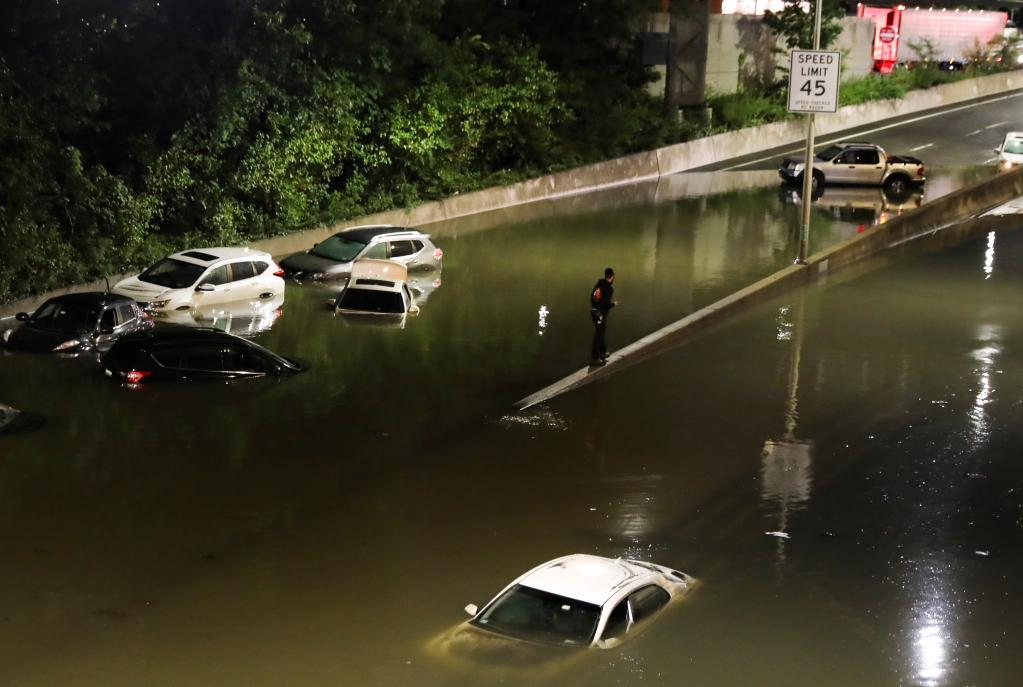 2021年9月2日,美国纽约一条主要道路上的车辆被积水淹没。受飓风“艾达”影响,暴雨9月1日晚开始袭击纽约市及周边地区,并引发洪涝灾害。(图源:新华社)
