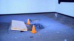 当然,大家肯定也发现了,Salto-1p在调节自己跳跃的精确度时,越是不怎么平整的路面,就越需要更多的小跳跃来帮助调整,远距离的抛射瞄准目前来说还是很困难的。