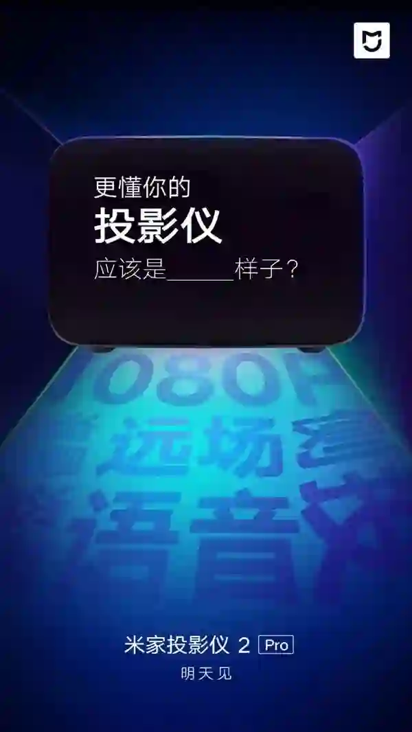 小米电视官微官宣:米家投影仪 2 Pro 将于明天发布。根据海报有以下亮点:支持 1080P、远场语音、侧投和海量资源。支持远场语音呼叫小爱同学,侧投意味可以不用放在正面。