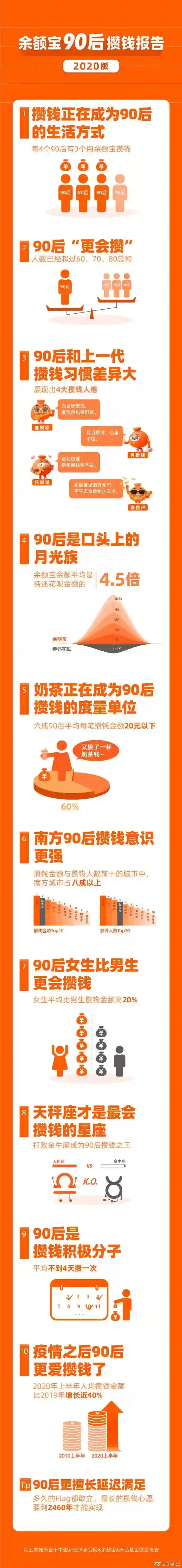 余额宝2020年90后攒钱报告出炉啦!根据报告平均 4 个 90 后 3 个用余额宝攒钱;疫情后,90 后平均攒钱金额涨了近 4 成;90 后攒钱擅长“延迟满足”,最长的愿望要 2460 年才能实现,奶茶成为攒钱新单位。今天,你攒钱了吗?