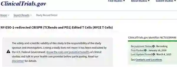 与此同时,杭州市肿瘤医院院长吴式琇也开始了相关研究,适应症为晚期食管癌。在这项研究中,CRISPR靶向的同样是PD-1基因。在NPR 2018年的报道中,吴式琇表示,约有40%的患者响应了这一疗法,其中有一名患者存活已超一年。研究中有9名患者去世,但是吴式琇表示这是因为癌症引发的,与新疗法无关。