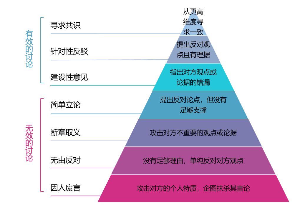 这是整体的概览。下面四级都属于“无效的沟通”,只有上面三级,才是有效的讨论。