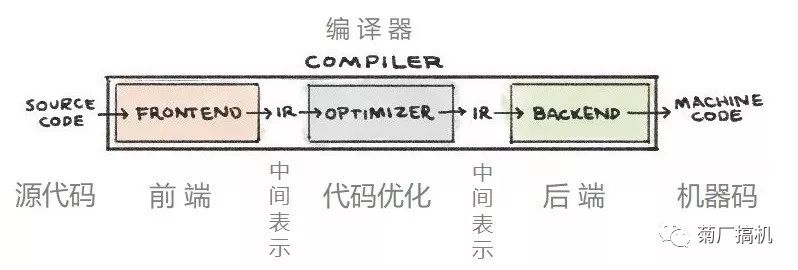 今天,GCC + LLVM 已经被替换成了 Clang +LLVM。LLVM负责编译器后端,用来处理代码优化和跨平台,而Clang负责前端,只需将程序源代码转换成LLVM可以看得懂的IR(Intermediate Representation,中间语言)即可。
