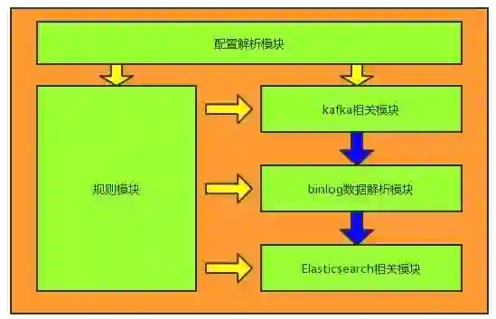 负责解析配置文件(toml 或 json 格式),或在配置中心(Skipper)配置的 json 字符串。包括 Kafka 集群配置、Elasticsearch 地址配置、日志记录方式配置、MySQL 库表及字段与 Elasticsearch 的 Index 和 Mapping 对应关系配置等。