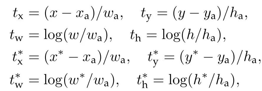 其中就是Classification(Lcls)和Regression(Lreg)两个损失。对于边界框的回归,其是采用以下4个坐标的参数化: