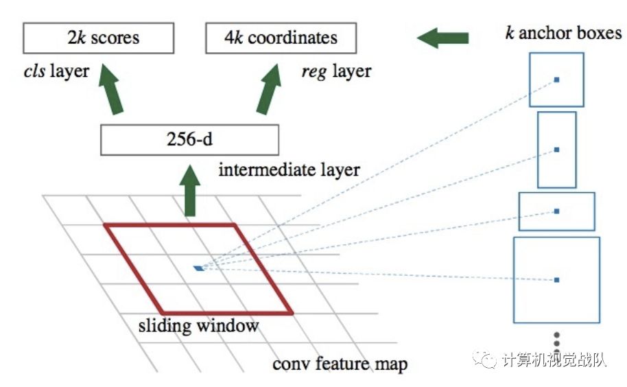 在feature map上滑动一次,得到一个小网络,该网络输入是3x3x256,经过3x3x256x256的卷积,就可以得到1x1x256的低维特征向量。