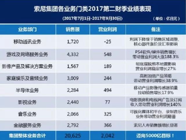 据悉,索尼2017年第二财季(7-9月)销售额同比增长22.1%,为20625亿日元;利润增长346%,至2042亿日元。