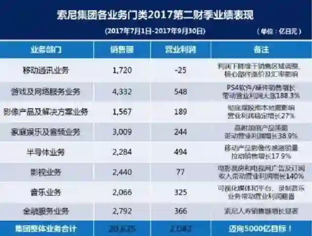 据媒体报道,近日,索尼宣布,预计到3月份结束的本财年将取得创纪录的营业利润。这将是索尼20年来首次再创利润纪录。索尼预计2017财年销售额将达8.5万亿日元(约5032.18亿人民币)、营业利润至6300亿日元(约372.97亿人民币),后者比此前预计调高了26%。