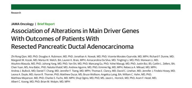 该研究对应文章则发表于最新上线的JAMA杂志,研究名称为:“Association of Alterations in Main Driver Genes With Outcomes of Patients With Resected Pancreatic Ductal Adenocarcinoma。”
