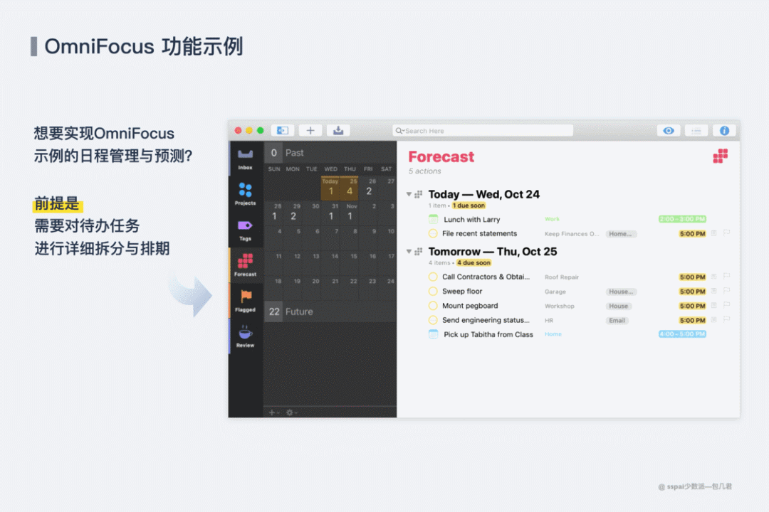 所以第一个问题,我要问自己,我的生活是否已经繁忙到需要用日程管理?是否已经复杂到需要使用 OmniFocus ?还是说,我是在用工具来套生活,将生活中的小事都不合时宜的丢了进去,只是因为高效人士都是这么做的。