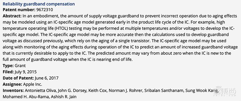 2015年,他又提交了一项名为《可靠性保护带补偿(Reliability guardband compensation)》专利申请。