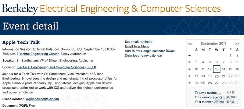 ▲加州大学伯克利分校刊登的Santhanam讲座信息