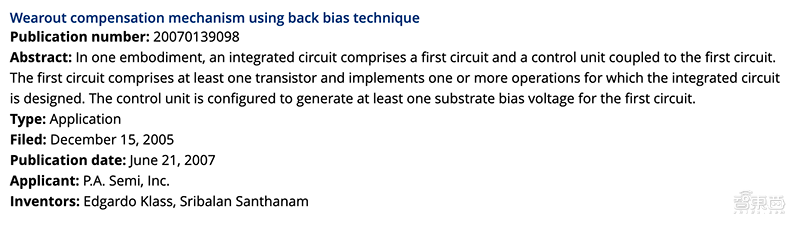 2005年,Santhanam提交一项名为《使用反向偏置技术的磨损补偿机制(Wearout compensation mechanism using back bias technique)》专利申请。
