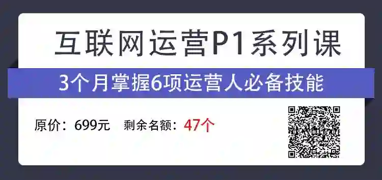 这门备受好评的运营P1课程,现在仅剩最后11个优惠名额。如果你想要入门、转行做互联网运营,不妨扫描下方图片二维码前去报名,给自己一次蜕变的可能。