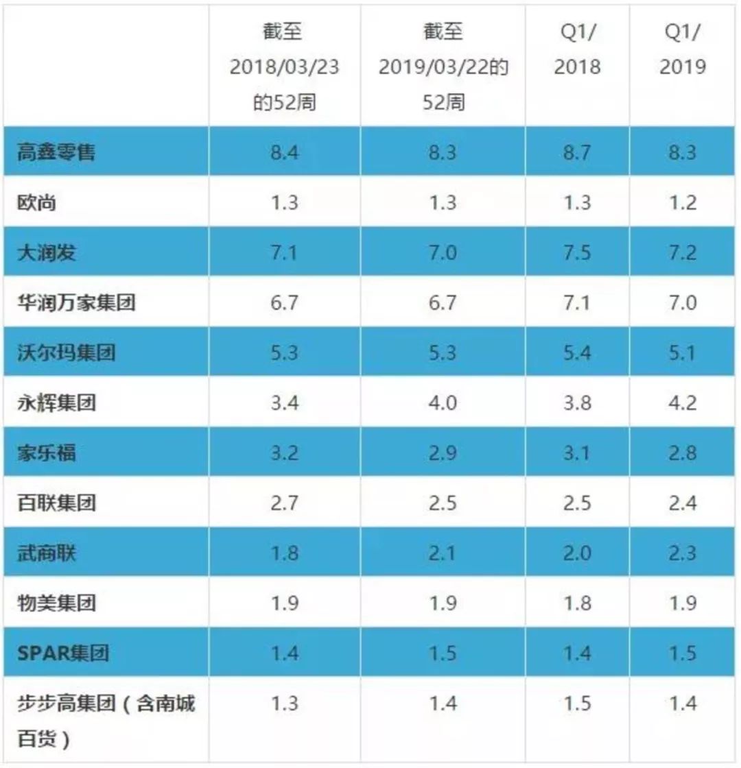 二十多年过去了,当年那种开到哪红到哪,开门前消费者会在门口排队等待入场的盛况早已成为过往。如今,家乐福在中国的市场占有率已一路下滑至第五名。来自凯度消费者指数的数据,截至2019年一季度,家乐福以2.8%市场份额排在高鑫零售(大润发+欧尚)、华润万家、沃尔玛、永辉之后。