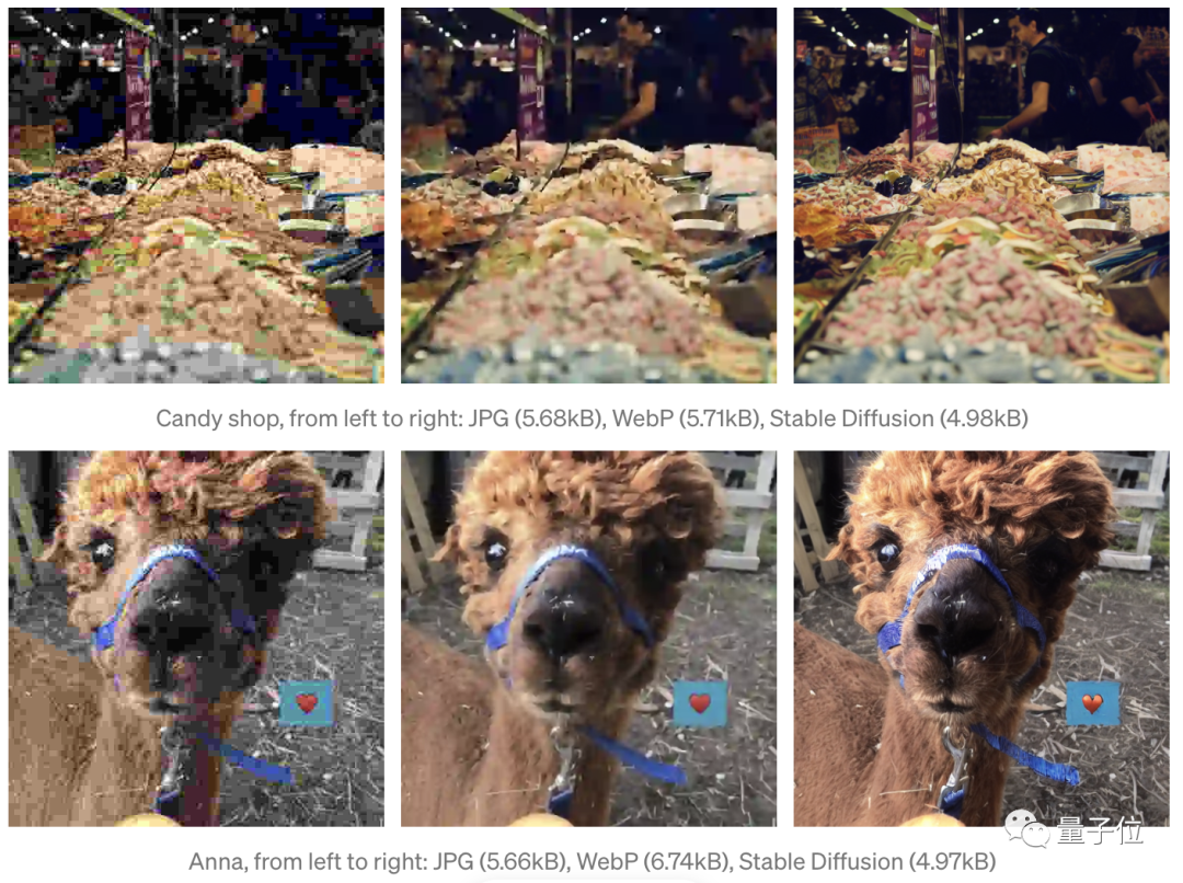 对于同一张原图,Stable Diffusion压缩出来的图像不仅有更多细节,而且压缩伪影也变少了。