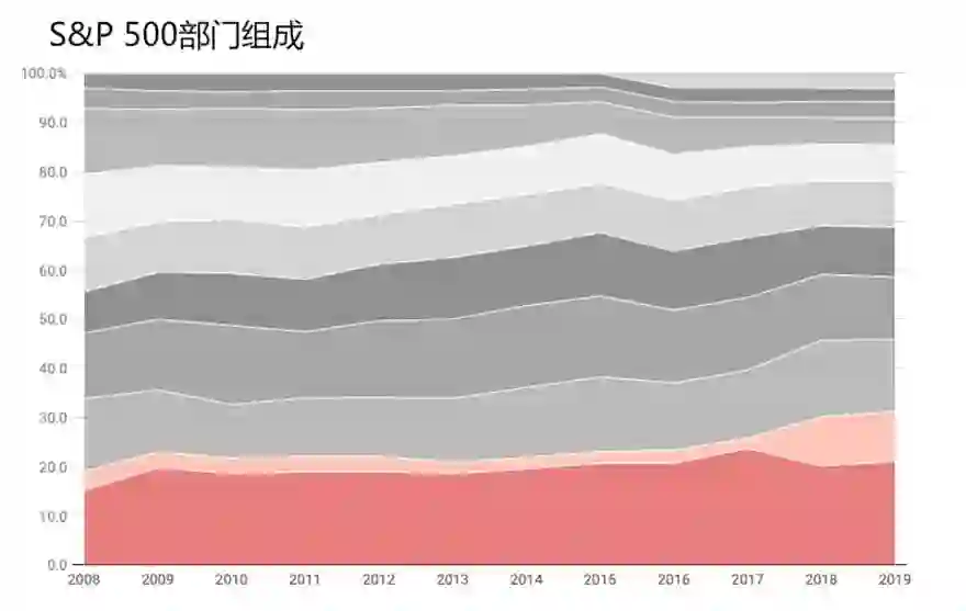 标准普尔500指数(S&P 500)由11个经济类别组成。该指数衡量的是美国大型企业的健康状况,进而衡量其经济状况。由于标准普尔500指数是根据其成份股公司的价值来加权的,科技公司在该指数整体价值中所占的份额越来越大。