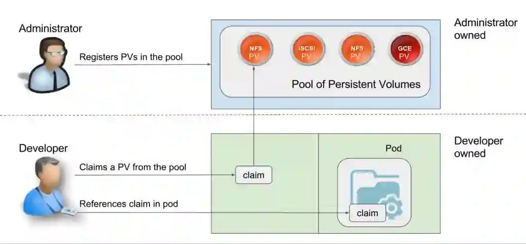 另一方面,持久卷声明是对存储资源——也就是持久卷——的需求。有了持久卷声明,我们就可以将存储与特定的节点绑定在一起使用。