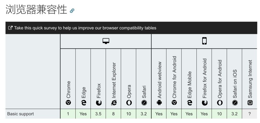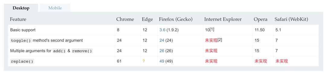这两个方法可以通过传入CSS选择器形式的字符串,就可以匹配到预期的DOM节点。以下是目前两个API的兼容情况: