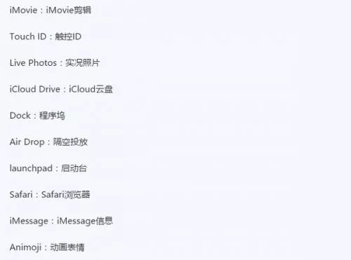 比如iMovie改成iMovie剪辑,Touch ID是触控ID,Animoji是动画表情。有网友整理了一个较为完整的列表,苹果对程序名称汉化多达10个左右,还是比较用心的。